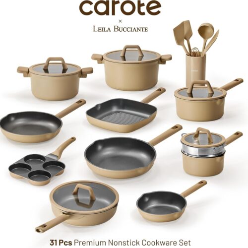 CAROTE 31PCS Pots and Pans Set, Nonstick Cookware Set Kitchen Non Stick Induction Cookware Non-toxic Granite Cooking set