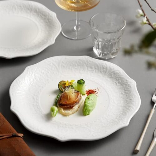 • Unique Shape Design: Pretty petal design shape with elegant edging will provide exquisite table setting. When you touch it, the embossed printing also give the plate a special texture. Suitable for wedding