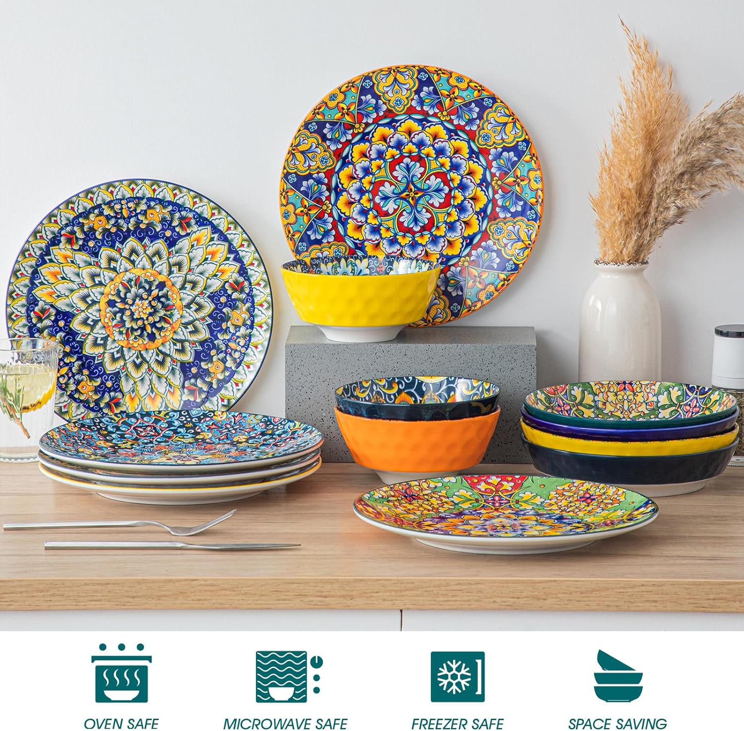 • 【Vibrant and Colorful Designs】Vancasso bohemian style plates boast enchanting and intricate designs that capture the free-spirited essence of Bohemian culture.The lively colors and artistic patterns evoke a sense of joy and positivity, enhancing your dining experience with a burst of energy and happiness.
